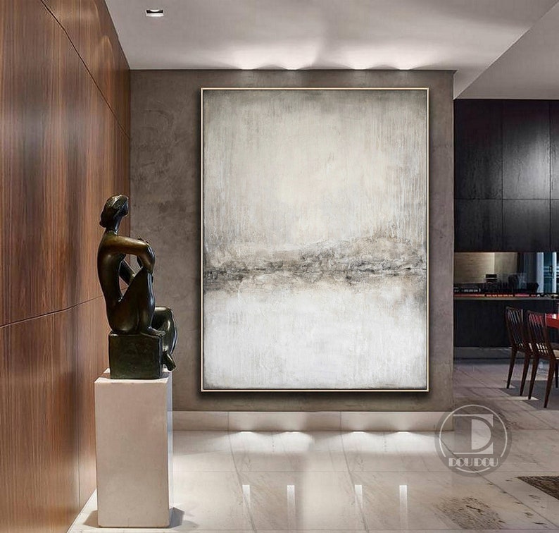 Abstract Oil Painting - Neutral Textured Wall Art for Modern Living Room Decor