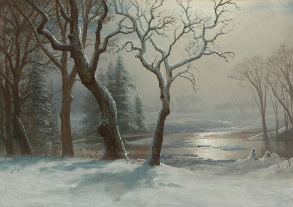 Winter River Landscape Oil Painting, Hand-Painted Snowy Forest Scene
